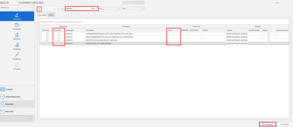 Αφού διορθώσουμε το λάθος κάνουμε Ανανέωση Εγγραφών ξανά, επιλέγουμε τον ασθενή και ξανά κάνουμε Αναγγελία .