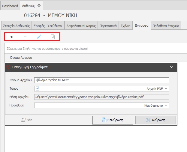 - Περιοχή “Στοιχεία Κλινικής”