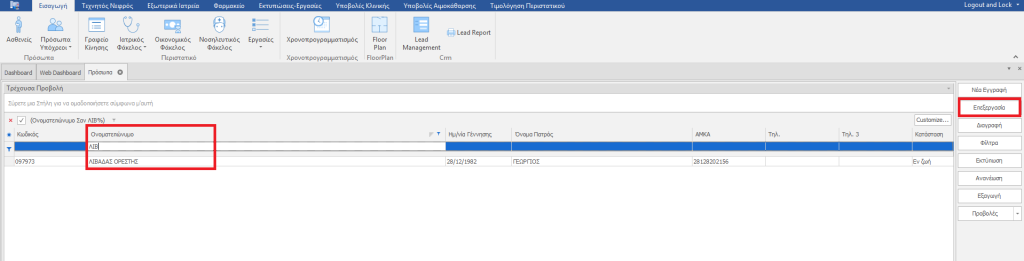 Κάνουμε αναζήτηση με το Ονοματεπώνυμο (1).
