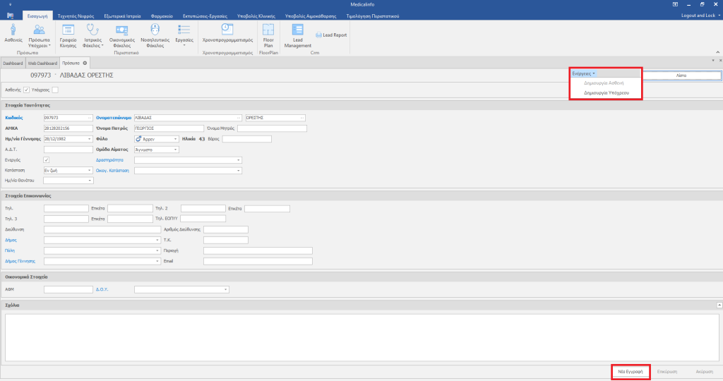 Εισαγωγή Στο Νοσηλευτικό Φάκελο μας δίνεται η δυνατότητα καταχώρησης δεδομένων π
