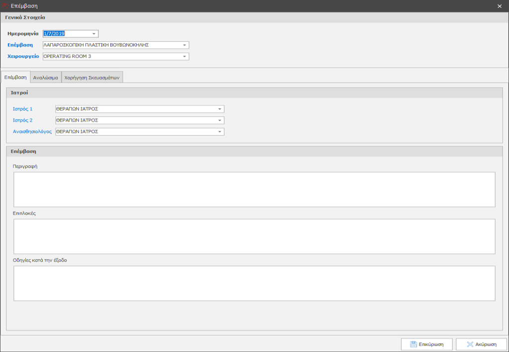 Εισαγωγή Στο Νοσηλευτικό Φάκελο μας δίνεται η δυνατότητα καταχώρησης δεδομένων π