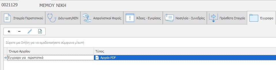 Στο μενού Εκτυπωσεις κλικάρουμε στο Εισιτήριο Έγκριση και ενεργοποιείται το μενού με τις εκτυπώσεις εγγράφων που αφορούν την εισαγωγή ασθενή.