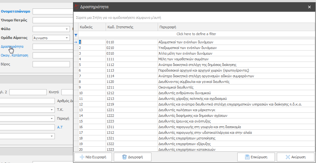 1. Στοιχεία Συναλλασσομένου: Σταθερά στοιχειά ασθενή/υπόχρεου.